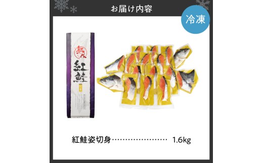 容量 | ■内容 紅鮭姿切身:1.6kg(真空個包装) ■原材料 紅鮭、食塩 |