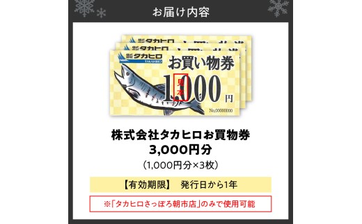 ~タカヒロさっぽろ朝市店のみで使用可能~ タカヒロさっぽろ朝市店お買物券3,000円分