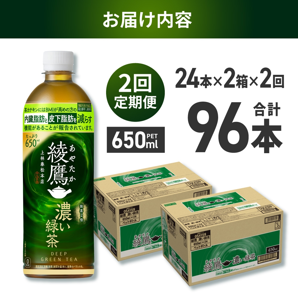 ~内臓脂肪”と”皮下脂肪”を減らす『濃い緑茶』~ 【2ヶ月定期便】綾鷹 濃い緑茶(機能性) 650mlPET×48本|コカ・コーラ 飲料 ドリンク 飲み物 お茶 北海道 札幌市