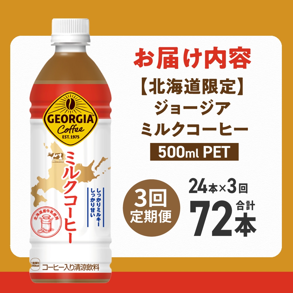 ~しっかりミルキー×しっかり甘い、どこか懐かしい味わい~ 【3ヶ月定期便】【北海道限定】ジョージア ミルクコーヒー500mlPET×24本|コカ・コーラ 飲料 ドリンク 飲み物 コーヒー 北海道 札幌市