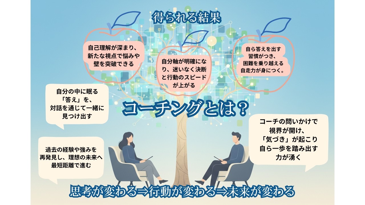 コーチングとは自分では認識してなかった、本当の想いや可能性、眠っていたアイデアに気付く会話の時間になります。楽しい観光をただの思い出に終わらせず、自分の気づきに繋げてください。