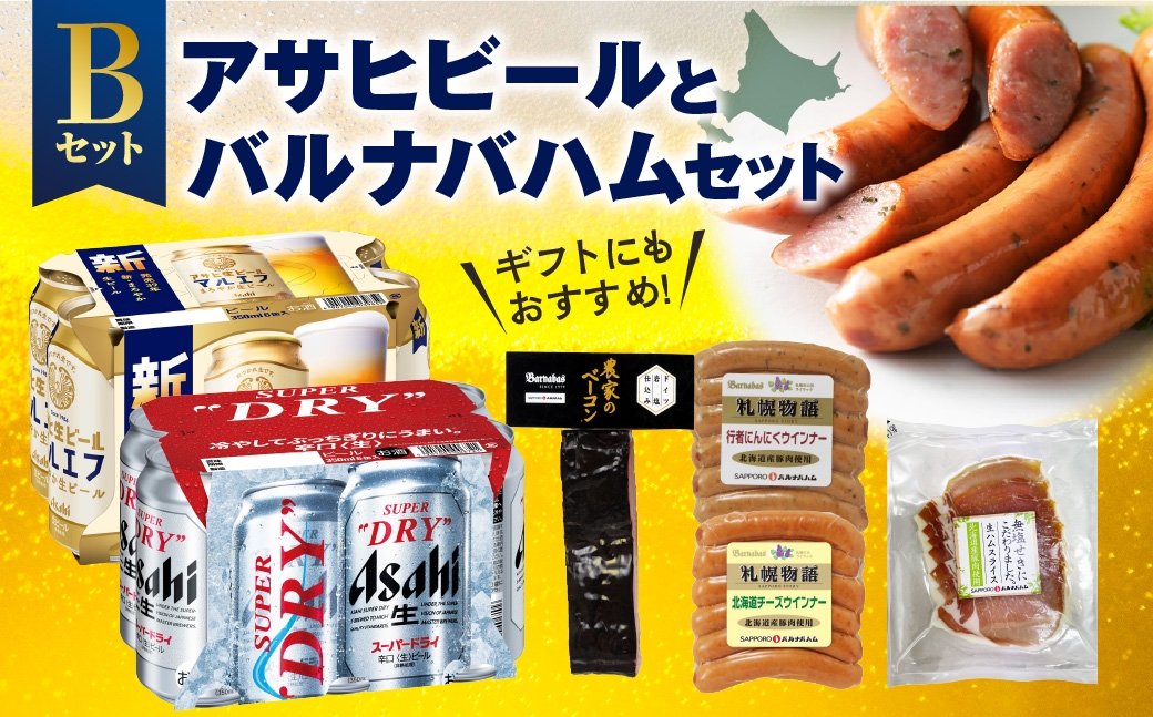 ~アサヒビールとバルナバハムのセットです~ アサヒビールとバルナバセットB| ビール 350ml お酒 おつまみ 北海道 札幌市