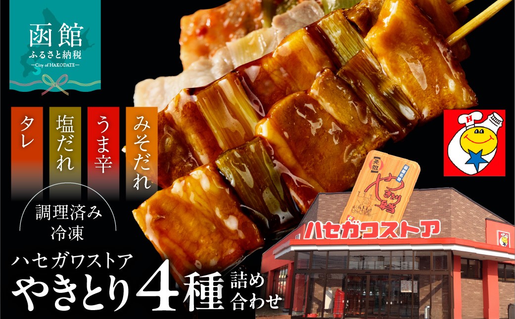 自宅でやきとり弁当!調理済み! ハセガワストア 調理済み冷凍やきとり 4種詰め合わせ 7袋(豚精肉21本)_HD066-002