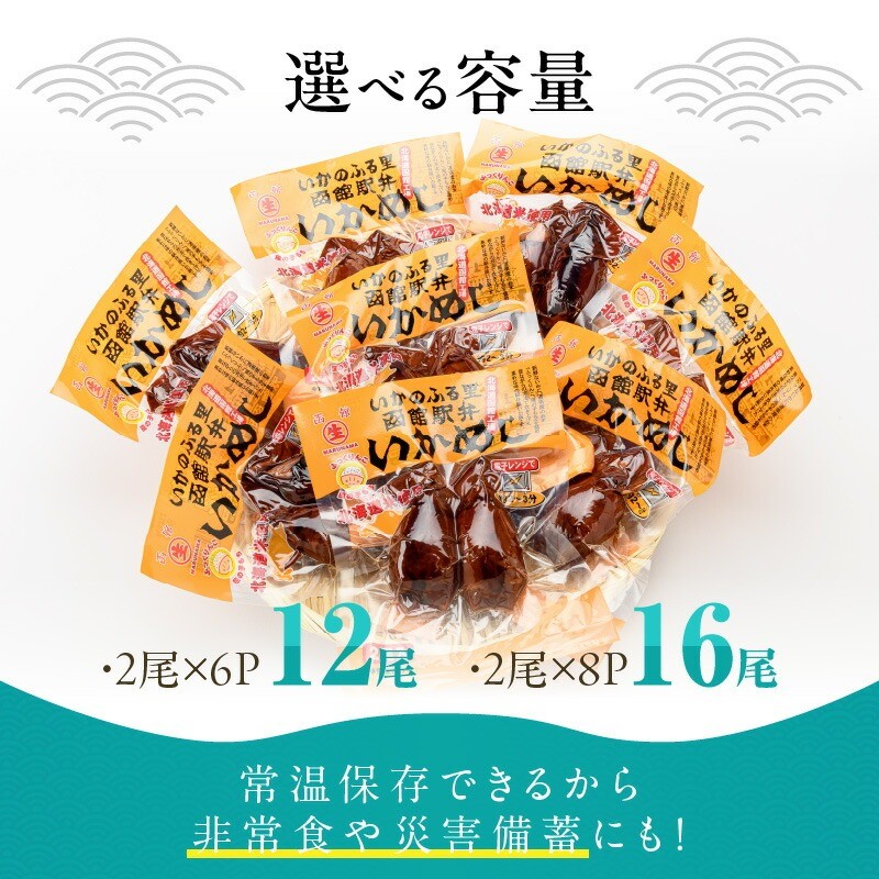 <<内容量が選べる>> いかめし 12尾セット(2尾×6P)~16尾セット(2尾×8P)ふるさと納税 いかめし セット 選べる 内容量 12尾 16尾 2尾ずつ 個包装 イカ 飯 柔らか 食感 伝統製法 駅弁風 いかのふる里 常温 レトルト 非常食 もち米 風の子もち ふっくりんこ おかず おやつ 惣菜 手軽 湯煎 レンジ調理 簡単 グルメ 北海道 函館市 送料無料_HD231-007-sku
