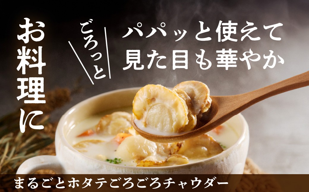 北の海の荒波で育つ、身の引き締まった味の良いホタテを新鮮なうちにスチームボイルし、急速凍結しました。素材の旨みをそのまま閉じ込めています。