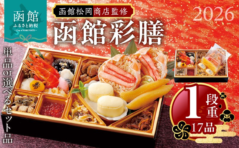 老舗函館松岡商店が厳選した、函館生まれの美味しさを中心に詰合わせた特別なおせち 【先行予約】 2026年 おせち 1段重 17品 山松松岡商店 函館彩膳 単品 セット 冷凍 北海道 函館市 送料無料_HD148-002-sku