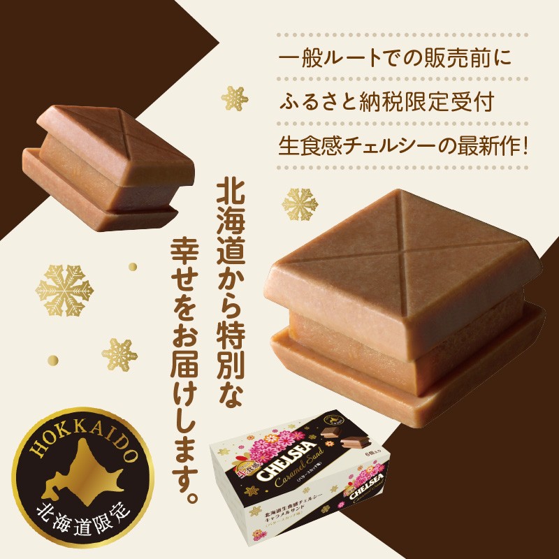 北海道生食感チェルシーキャラメルサンドが一足先に函館市のふるさと納税で手に入る! 【期間限定 ~11/20(木)23:59まで】期間限定 数量限定 北海道 生食感 チェルシーキャラメルサンド チェルシー 2種 セット キャラメル チョコレート バタースカッチ ヨーグルトスカッチ スイーツ お菓子 キャラメルサンド お取り寄せ 函館市 送料無料_HD207-002