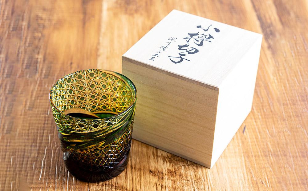 小樽 切子 オールド雅 ー緑琥珀ー 約250ml×1個 高さ9cm 化粧箱
