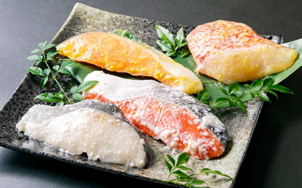 新鮮な海の幸を「粕漬け」、「西京漬け」の二通りの漬け込みで仕上げました。どれも食欲をそそる一品です。