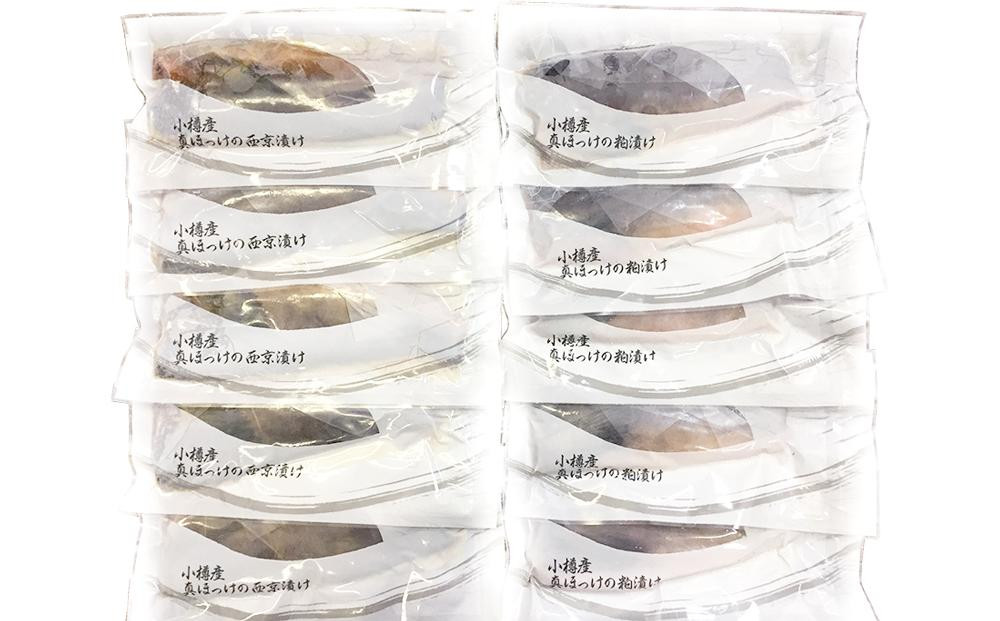新鮮な「真ほっけ」を風味豊かな「西京漬け」と「粕漬け」の二通りに仕上げました。 【小樽協和食品】小樽産 ほっけ西京漬け・粕漬け詰め合わせ 各5枚 計10枚 1.2kg(大丸・松坂屋おすすめ品)