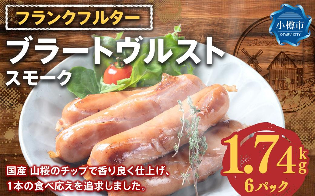 国産 山桜のチップで香り良く仕上げた、食べ応えのあるソーセージ フランクフルターブラートヴルスト スモーク 290g×6パック (1.74kg)