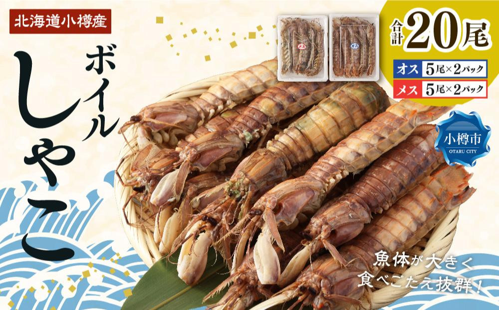 取れてからすぐに釜茹でした「しゃこ」を急速冷凍。鮮度そのままでお届けします! ボイル しゃこ オス・メス 合計20尾 (各10尾)