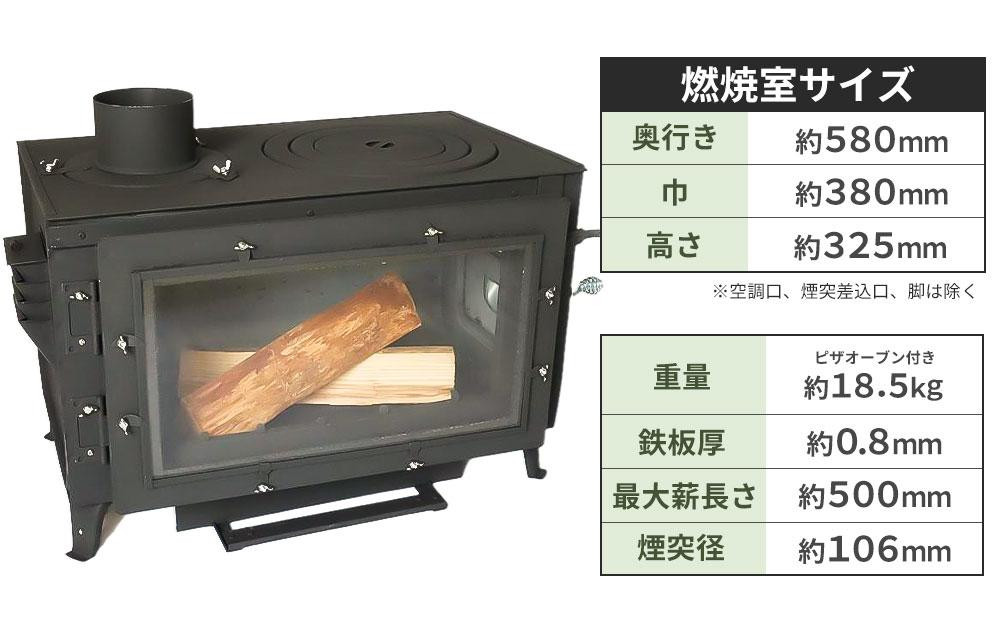 調理もできる!シンプルな角型薪ストーブ 新保製作所 ロマンチカル 薪ストーブ 煙突上出し ピザオーブン付 脚長さん付