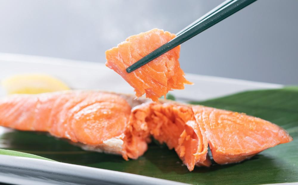 数ある紅鮭・秋鮭原料の中から、まずは鮭の顔つき・うろこの輝き・はらす部分の脂乗りを見た目で判断し、定塩(3~4%)加工した後、実際に焼いて試食して…を繰り返し、納得のいく原料を使用しています。