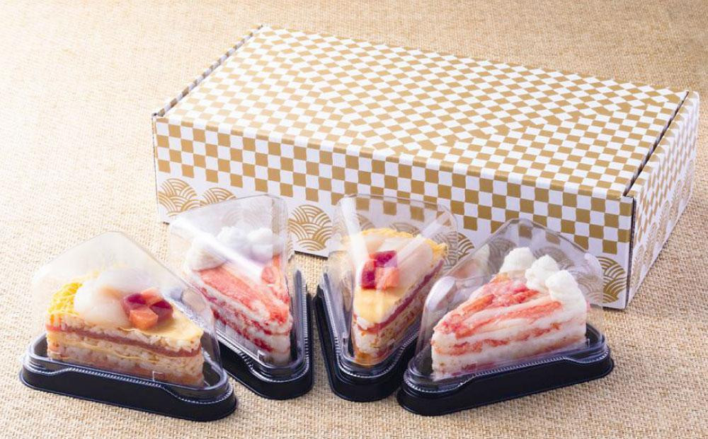 お寿司をケーキ風にデコレーションしました!新しいお寿司をお楽しみください。 小樽 寿司ケーキ 2種 130g×各2個