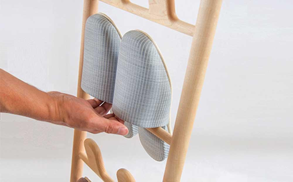 スリッパを掛けているときも、ないときも木の素材感を大切にした美しい佇まいのスリッパラックです。