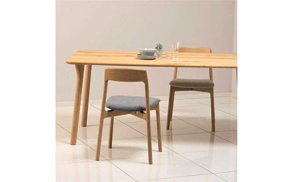 無垢材の厚みのある背が印象的な、なめらかな手触りのサイドチェアー。