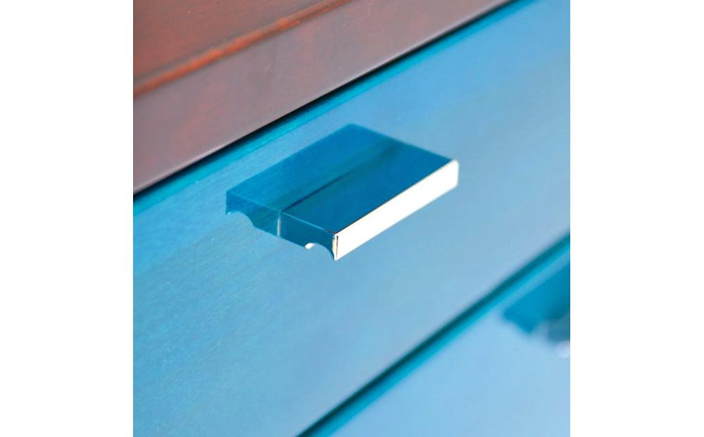 はっと目を引く青色が印象的で、美しい造形美が魅力的なチェストです。