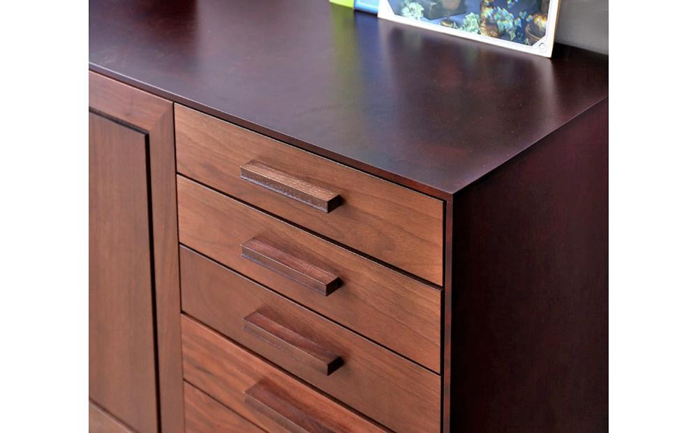 旭川家具 クリエイトファニチャーW&B(ダブルアンドビー) チェス…1,000,000 円 大人のデザインと低めの重心が、安定感を生むチェスト。 整然と並んだ引き出しの美しいウォールナットが、私たちを魅了してくれます。 上品なツヤを持つ広い天板は、サイドボードとしても十分活躍してくれ、新品の状態からヴィンテージ感が漂い、使い込むほどに味わい深さを増す愉しみを、日々の生活で味わってください。 小物の収納に便利な6つの引き出しは、生活用品をたっぷり収納できます。 伝統的な民芸家具の技法を用いながら、シンプルスマートに仕上げたデザインは和洋どんなインテリアにもよく馴染み、上質な素材は歳月を経て深みを増し、使う人ごとに違う表情へと成長していきます。 抜群の収納力を誇る下部の4つの引き出しには、スライドレールが取り付けられています。 そのためたくさん収納して重くなっても楽に引き出すことができ、 ストッパー機能により手前に落ちることもなく、誰でも安全に使用することができます。 ※天然木のため、色味の経年変化が生じる場合がございます。 - 常温便