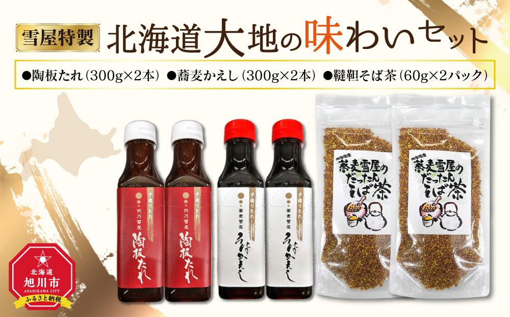 北海道の旭川市にある小さなお店と小さな加工所が、化学調味料に頼らない大地の味を求めて手作りした“タレ”と、無農薬栽培の北海道産の“韃靼そば茶”のセットです。