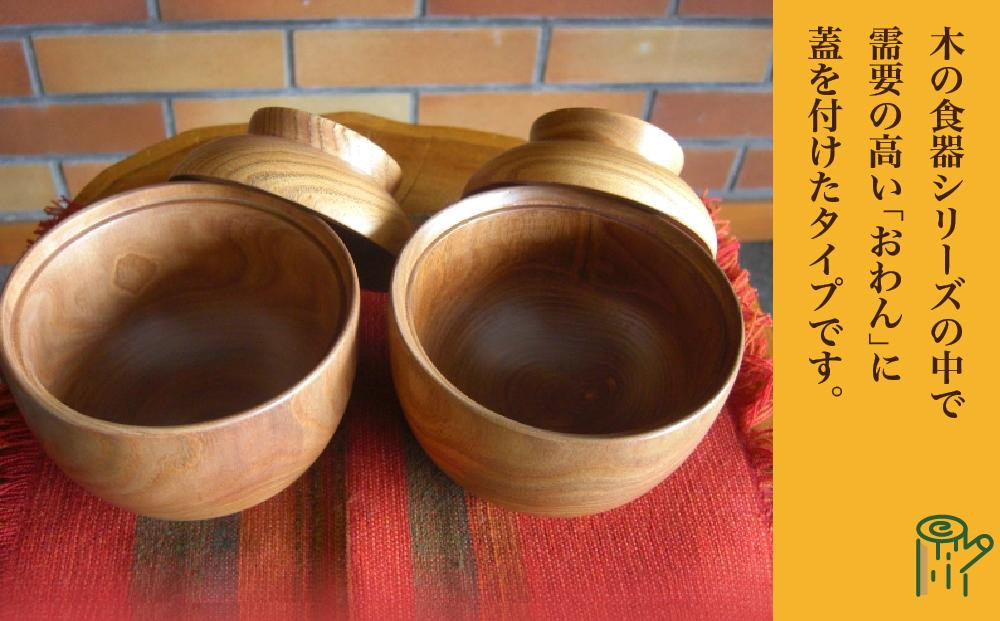 エンジュで作り上げた木の食器シリーズの中で需要の高い「おわん」に蓋を付けたタイプです。