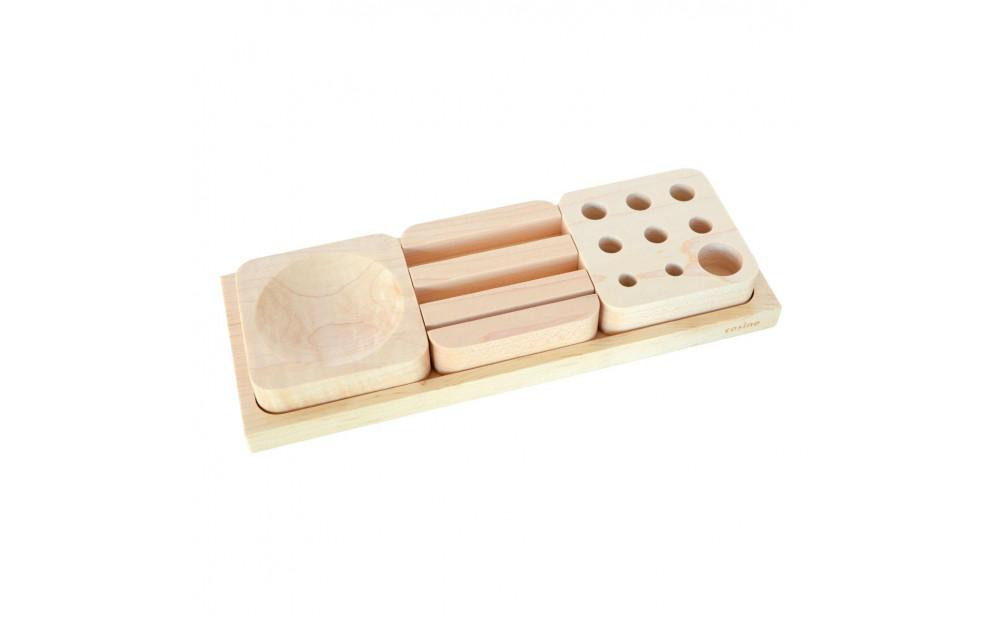 トレーと3つのパーツがセットされたデスクオーガナイザーです。