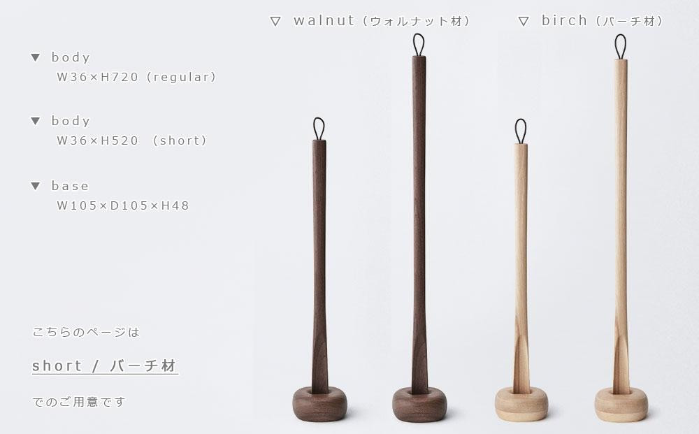 立ったままでも腰をかがめずに楽に使用できるレギュラータイプ2種類(walnut・birch)の計4種類から