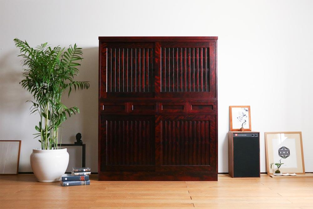 水屋(みずや)とは、もともと台所を示すことばで、そこに置かれる食器棚を“水屋箪笥”と呼んでおり