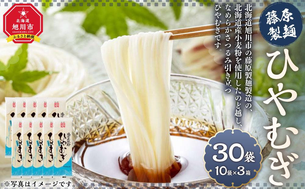 北海道旭川市の藤原製麺製造の、北海道産小麦粉を使用したのど越し、なめらかさ、つるみ引き立たせたひやむぎです。