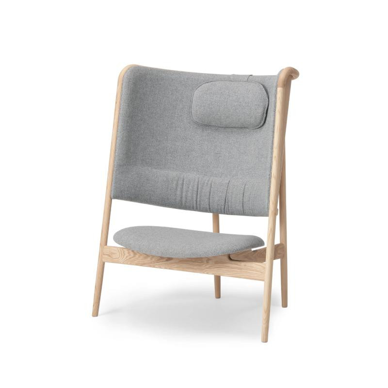 2021年の「国際家具デザインコンペティション旭川[IFDA]」の入選作で、審査会では「包まれる感じ」「どこにあっても自分だけの居場所がつくれる」とパーソナルスペースとしての心地よさ、そして「美しくポテンシャルのあるデザイン」に注目が集まりました。まわりの視線を遮る高さと体を包むような背、体勢を自由に変えられる座面の広さ。人と人の距離感が重視される時代、ほどよく間を保った個の空間づくりを可能にし、公共施設や空港、またオフィスやカフェなどの空間構成にも役立つ一脚です。
