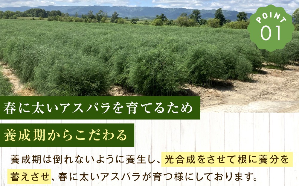 夜に体内で光合成をして朝から一気に伸びることで柔らかく甘いアスパラになります。