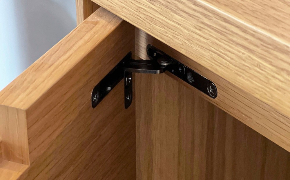 シーンに合わせて好みの仕様を選べるスタンダードキャビネット。本体はオーク材スーパークリア、マロンブラウン、チャコールグレーの3色展開。メタルレッグは浮遊感を出すと同時に脚元のお掃除のしやすさも考慮しています。カラーの組み合わせによってモダンからカジュアルまで、どのようなテイストの空間にもマッチします。