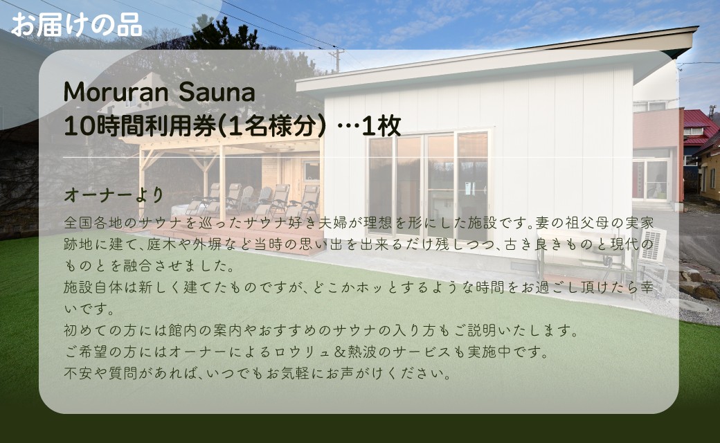 チョイスPayポイントと交換できる品 室蘭唯一のセルフロウリュ体験!自然豊かな貸切フィンランド式サウナで寛ぎの時間を。 Moruran Sauna 10時間利用券(1名様分) - フィンランド式サウナ 【 サウナ 体験 利用券 チケット 貸切 貸し切り 完全予約 北海道 室蘭市 】 MROBP005