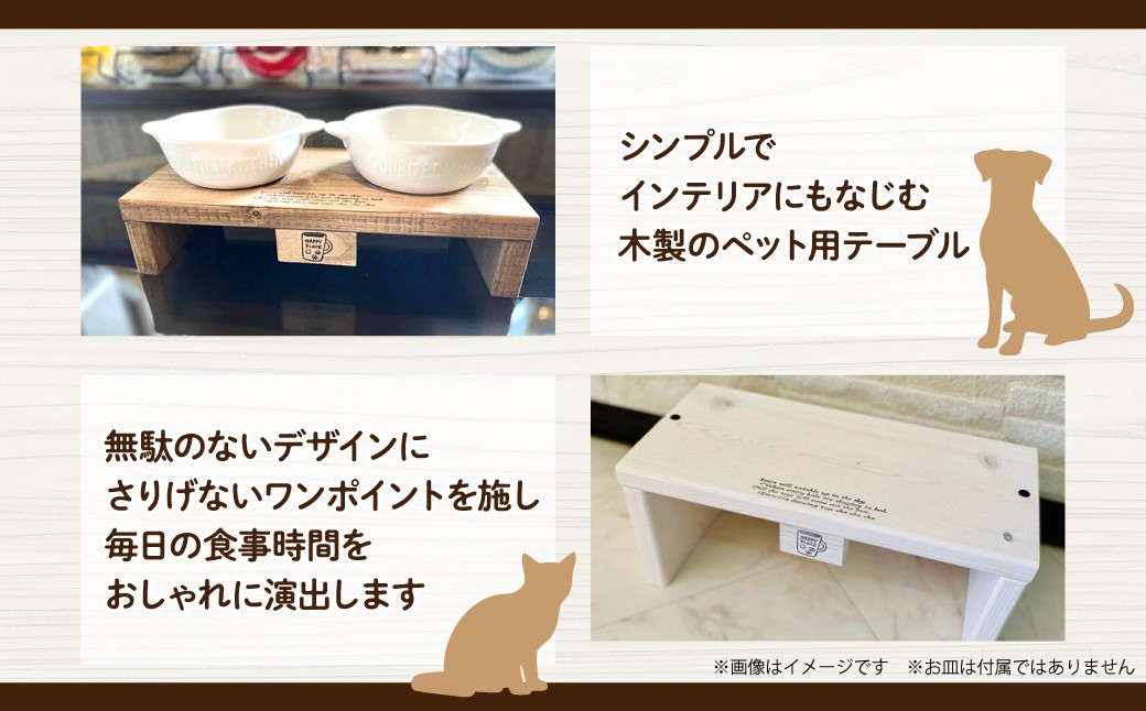 シンプルでインテリアにもなじむ、木製のペット用テーブルです。