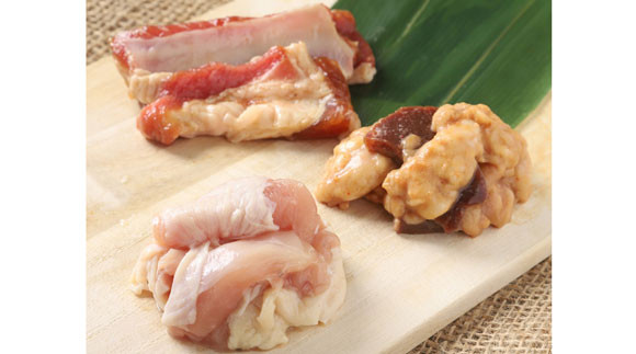 特製ダレで漬け込んだ阿寒ポークのスペアリブ、絶妙な塩加減で味付けした鶏モモ肉、スタミナ満点の特製みそダレ牛ホルモンのセットになります。