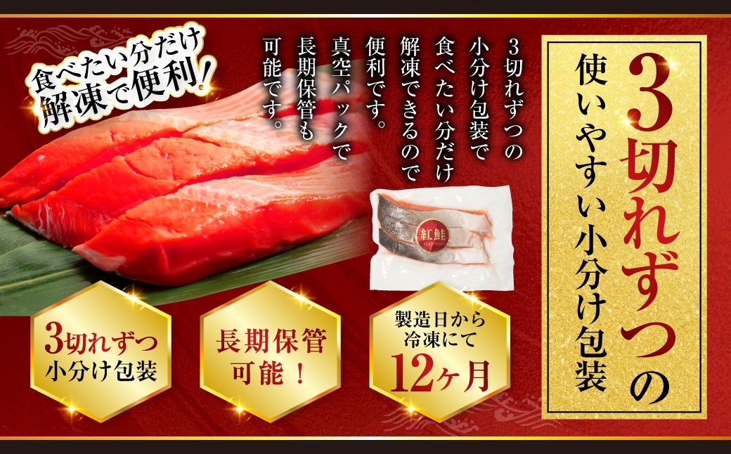 選べる配送月 天然紅鮭 3切×12パック 36切れ 鮭 焼き魚 おかず …