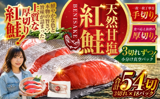 選べる配送月 天然紅鮭 3切×18パック 54切れ 鮭 焼き魚 おかず …
