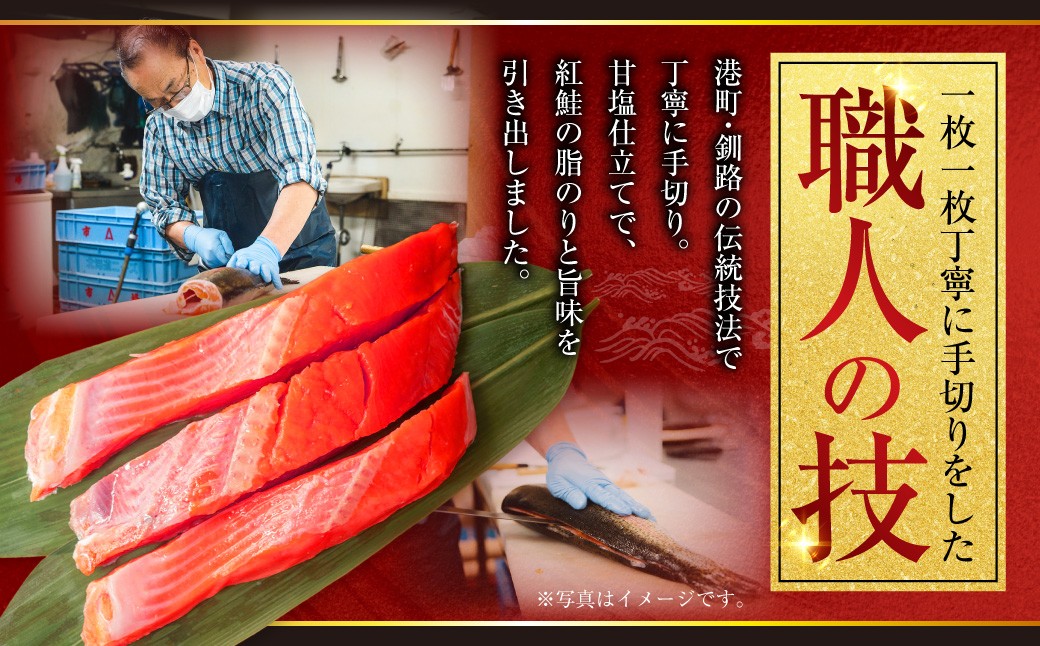 北洋天然沖獲り(早期漁獲)した紅鮭を甘塩仕立てに仕上げました!! 選べる配送月 特選 甘塩天然紅鮭 3切真空×3パック 鮭 甘塩仕立て 厚切り 切り身 切身 北海道 鮭 サケ さけ しゃけ 紅鮭 甘塩 天然 魚 魚介 海産物 冷凍 パック おかず 北海道 釧路市