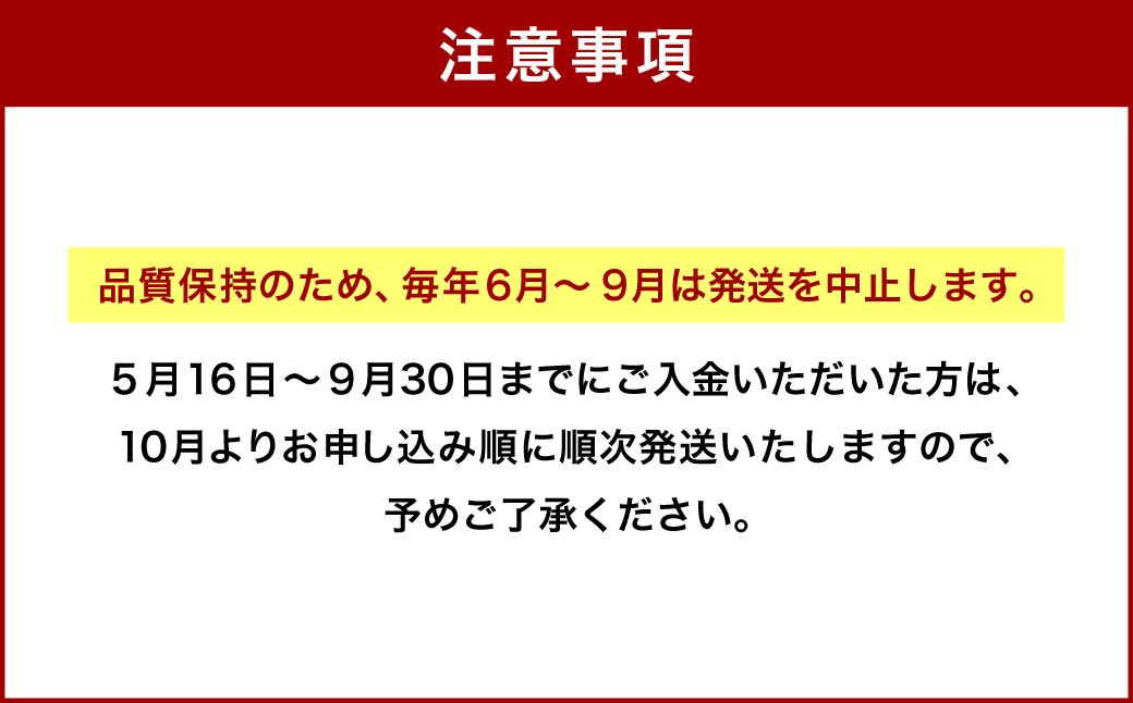 毎年10月上旬~5月下旬迄発送予定 ※6月~9月発送しない |