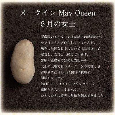 「メークイン」「May Queen(5月の女王)」は、原産国のイギリスでは栽培上の繊細さから今ではほとんど作られていませんが、味覚に敏感な日本においては品種として定着し、支持され続けています。