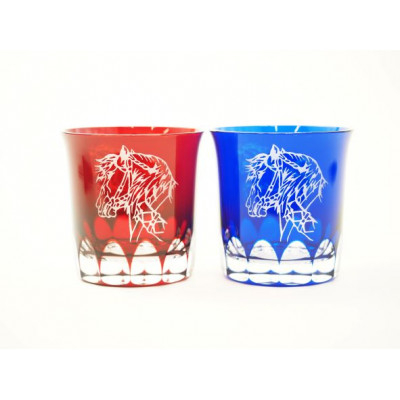 切子の色・カットの美しさに、ばん馬の力強さをデザインした当会渾身の逸品をお楽しみください。