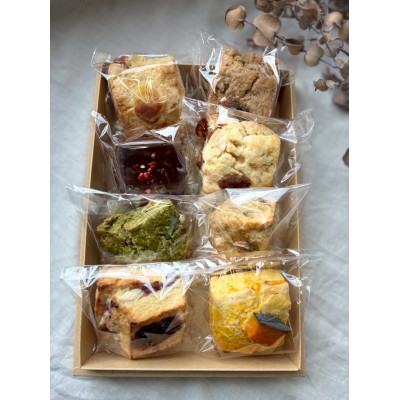 | 容量 | ■お礼品の内容について ・北海道の風スコーンBOX[1箱(8種類×各1個)] 製造地:北海道帯広市 ■原材料・成分 抹茶ホワイトチョコ:北海道産バター、北海道産牛乳、小麦粉、ヨーグルト、卵、砂糖、塩、抹茶パウダー、ホワイトチョコレート、ベーキングパウダー かぼちゃ:北海道産バター、北海道産牛乳、小麦粉、ヨーグルト、卵、砂糖、塩、かぼちゃ、ベーキングパウダー ピスタチオ:北海道産バター、北海道産牛乳、小麦粉、ヨーグルト、卵、砂糖、塩、ピスタチオペースト、ピスタチオ、ベーキングパウダー ダブルチョコ:北海道産バター、北海道産牛乳、小麦粉、ヨーグルト、卵、砂糖、塩、ココアパウダー、コーティングチョコレート、フリーズドライいちご、ベーキングパウダー キャラメル:北海道産バター、北海道産牛乳、小麦粉、ヨーグルト、卵、砂糖、塩、キャラメル、ベーキングパウダー いちじくシナモン:北海道産バター、北海道産牛乳、小麦粉、ヨーグルト、卵、砂糖、塩、ドライいちじく、シナモン、ベーキングパウダー チョコバナナ:北海道産バター、北海道産牛乳、小麦粉、ヨーグルト、卵、砂糖、塩、バナナ、コーティングチョコレート、ベーキングパウダー ブルーベリークリームチーズ:北海道産バター、北海道産牛乳、小麦粉、ヨーグルト、卵、砂糖、塩、クリームチーズ、ブルーベリー、ベーキングパウダー |