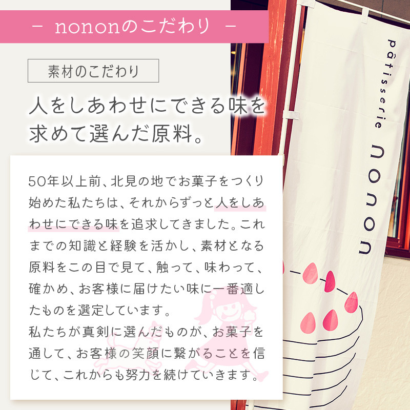 北見の住宅街にある、赤と白を基調としたかわいいパティスリー「nonon」。