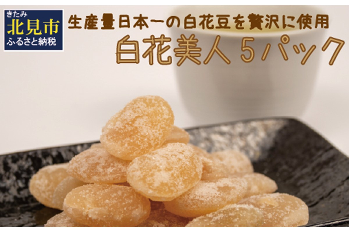 「豆の女王」をふんだんに使用しました。 生産量日本一の白花豆を贅沢に使用した大粒甘納豆「白花美人」5パック ( 甘納豆 白花豆 和菓子 おやつ 小分け パック ふるさと納税 )【104-0015】