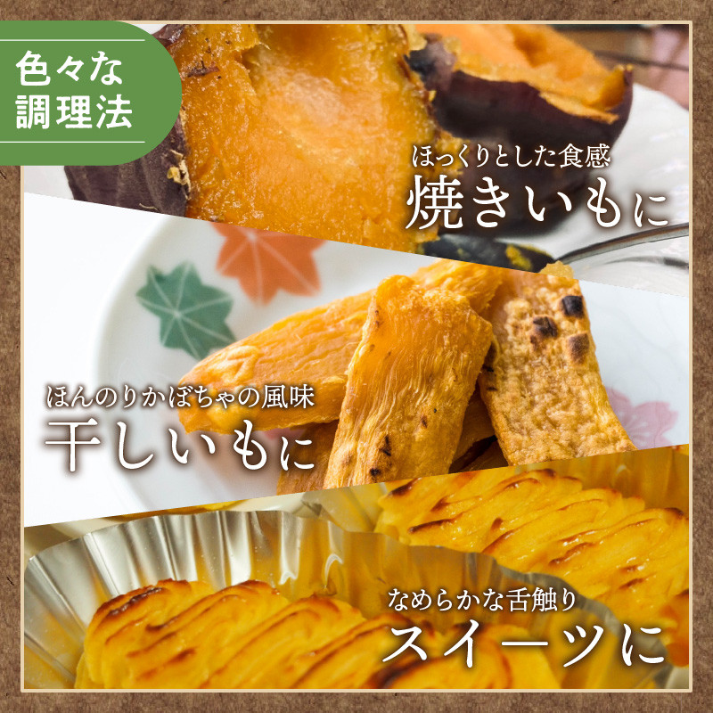 この品種は一般的なサツマイモに比べてβカロテンが通常の約100倍!オレンジ色の果肉がかぼちゃに似ていることから、その名がついたと言われています。
