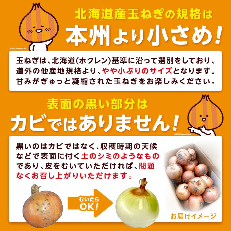 ※玉ねぎは、北海道(ホクレン)基準に沿って選別しており、道外の他産地規格より、やや小ぶりのサイズとなります。