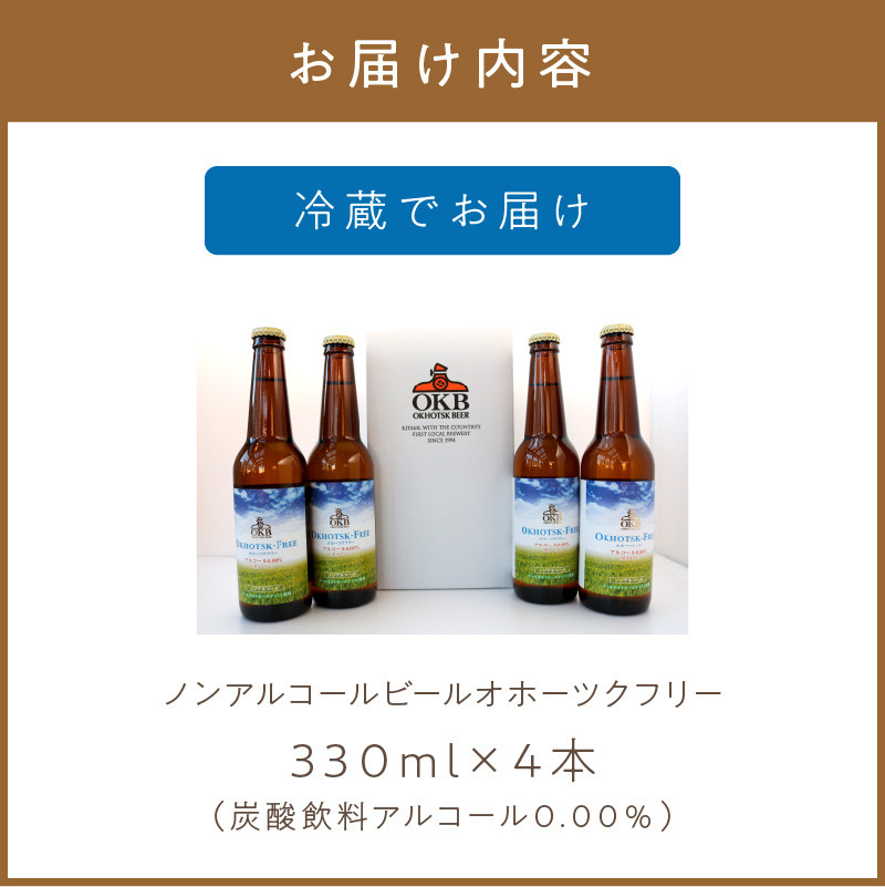 副原料・添加物不使用!麦芽100%のオールモルトノンアルコールビール飲料です♪ 《14営業日以内に発送》【 ノンアルコールビール 】 オホーツクフリー 4本セット ( ノンアル ビール ノンアルコール 炭酸 飲料 炭酸飲料 麦芽 麦芽100% )【028-0062】