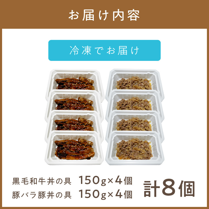 おいしさそのまま出来立ての味を食べられます。 レンジで1品!黒毛和牛丼・豚バラ豚丼の具 8個 ( 肉 牛肉 黒毛和牛 熟成 豚 豚バラ 総菜 冷凍 簡単調理 )【136-0028】