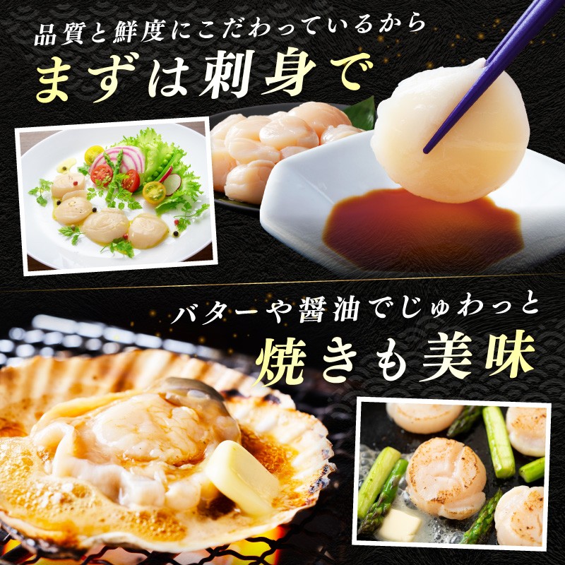 生食はもちろん、バター焼きや炊き込みご飯、カルパッチョなど幅広い料理に最適です。