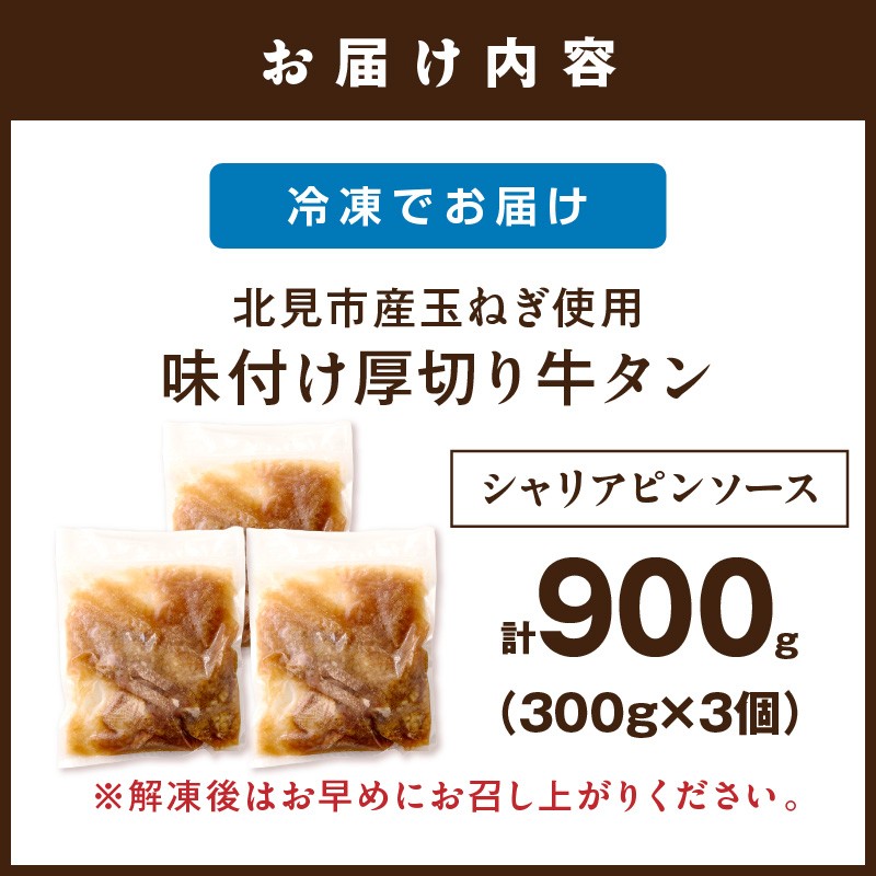 生産量日本一の北見市の玉ねぎを贅沢に味付けに使った牛タン 【予約:2025年12月から順次発送】北見市産玉ねぎ使用 味付け厚切り牛タン シャリアピンソース 300g×3個 ( 肉 牛肉 たまねぎ タマネギ 焼肉 )【224-0010】